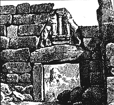 A mykénei várakat mindig magaslatra építették (29. ábra). A falakat három métert is meghaladó méretű kőtömbökből rakták össze, az erődítések fala sokszor a hét-nyolc méteres vastagságot is meghaladta. A szóhagyomány úgy tartotta, hogy e köveket földöntúli lények, "kyklopszok" rakták össze, innen a "ciklopfal" a kőfal ma is használt megnevezése. A kapuk előtt falszorost alakítottak ki, két oldalon álboltozattal fedett, kétoszlopos tornáccal: ezt a megoldást később a görög várak építői is átvették (propylaia). A legjobb állapotban fennmaradt várat Tirnysz városában találjuk (30. ábra).