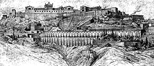 Az ókori görög kor művészeti eredményeinek összegzése az athéni Akropolisz (Kr.e. 5. évszázad) épületegyüttese (33. ábra). Meglepő módon szinte "össz-görög" alkotásnak tekinthető, hiszen a dór és jón stílus jegyeit egyesíti. Athén fellegvárának - akropoliszának - újbóli kiépítését a perzsákkal megkötött béke tette időszerűvé.
